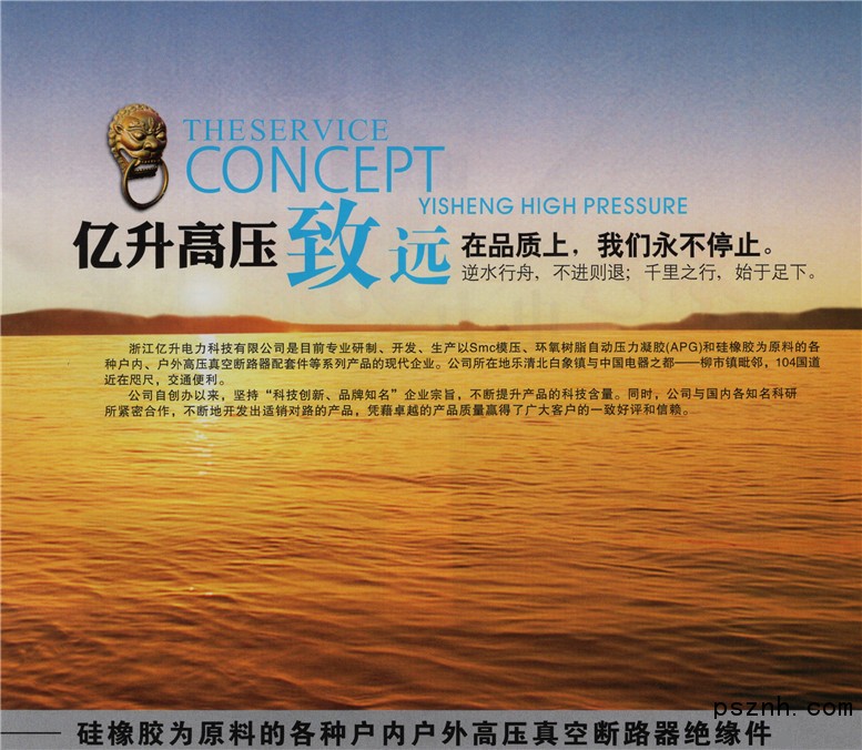 浙江億升電力科技有限公司是目前專(zhuān)業(yè)研制、開(kāi)發(fā)、生產(chǎn)以Smc模壓、環(huán)氧樹(shù)脂自動(dòng)壓力凝膠和硅橡膠為原料的各種戶(hù)內(nèi)、戶(hù)外高壓真空斷路器配套件等系列產(chǎn)品的現(xiàn)代企業(yè)。公司所在地樂(lè)清北白象鎮(zhèn)與中國(guó)電器之都——柳市鎮(zhèn)毗鄰,104國(guó)道近在咫尺,交通便利。