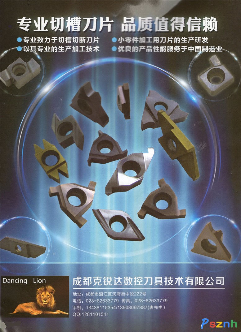 成都克銳達(dá)數(shù)控刀具技術(shù)有限公司主要生產(chǎn)各類數(shù)控機(jī)床用高精度硬質(zhì)合金可轉(zhuǎn)位精鏜刀片、切槽刀、切斷刀、車刀、鉸刀、淺孔鏜鉆刀片及CNC機(jī)床用硬質(zhì)合金刀片.和機(jī)夾木工刀片,仿形刀具;并承接來料、來樣、來圖加工和刀具返修業(yè)務(wù).