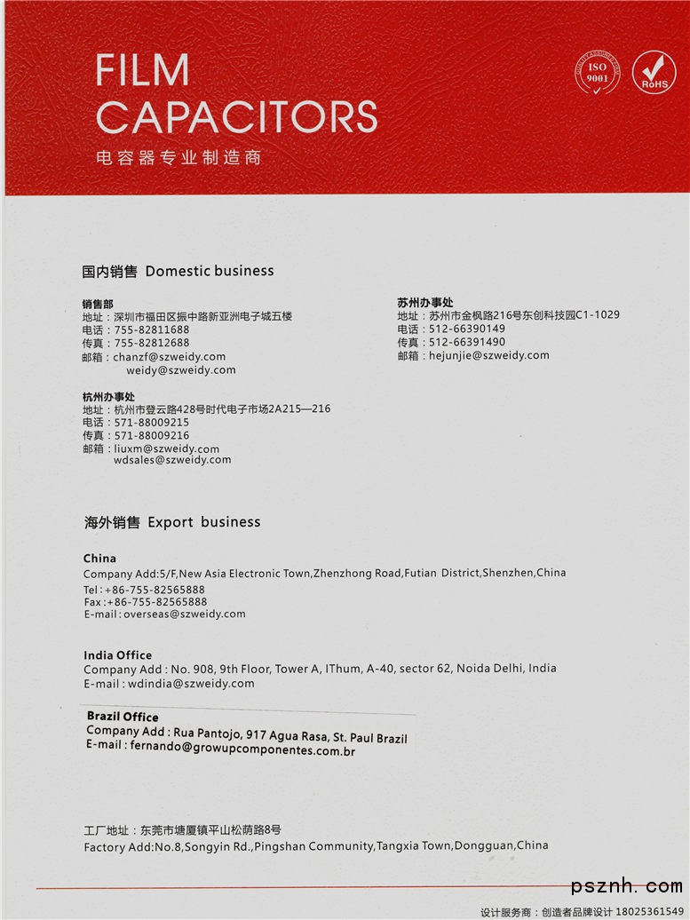 生產(chǎn)基地位于廣東省東莞市塘廈鎮(zhèn)平山工業(yè)園區(qū),廠區(qū)面積10000平米,員工總數(shù)200多人。經(jīng)過十多年的不懈努力,公司現(xiàn)已發(fā)展成為業(yè)界居于領(lǐng)先地位的薄膜電容器專業(yè)制造商,為照明、家電、通訊、汽車電 子、工業(yè)控制、綠色能源等各類整機客戶提供薄膜電容器一站式的解決方案。