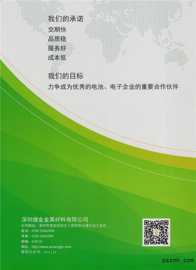 本公司有完善的質(zhì)量制度,從原材料的采購到產(chǎn)品生產(chǎn)都嚴(yán)把質(zhì)量關(guān),以質(zhì)量求生存是我們的質(zhì)量政策;以穩(wěn)定可靠的產(chǎn)質(zhì)量量,優(yōu)質(zhì)、高效、科學(xué)的服務(wù)立足于朝氣蓬勃的精密五金材料行業(yè),并本著開拓進(jìn)取,不斷創(chuàng)新的經(jīng)營理念來服務(wù)廣大客戶。我們用心打造:“專業(yè).誠信”的企業(yè)品牌形象,最優(yōu)惠的價格,最好的質(zhì)量,最好的服務(wù)。優(yōu)惠的價格,穩(wěn)定、可靠的產(chǎn)質(zhì)量量,專業(yè)、真誠、用心的服務(wù)是我們增金金屬對客戶的承諾!