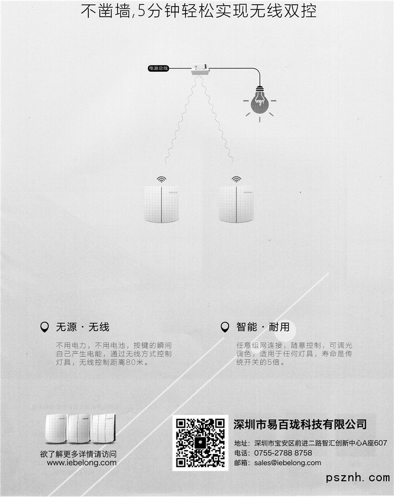 深圳市易百瓏科技有限公司專注于無(wú)線電工開(kāi)關(guān)領(lǐng)域的智能化研發(fā),集科研、制造、銷售于一體,為全球各地客戶提供“微能量采集”技術(shù)應(yīng)用及產(chǎn)品服務(wù),是一家科研、銷售、服務(wù)綜合性企業(yè)。易百瓏基于“微能量采集”技術(shù)衍生出的無(wú)線動(dòng)能系列開(kāi)關(guān),以全球化認(rèn)證、(申請(qǐng)國(guó)際專利PCT)和國(guó)家專利技術(shù)為核心,旨在實(shí)現(xiàn)智能產(chǎn)品家居化、普及化,讓真正的科技綠色環(huán)保電工產(chǎn)品成為大眾觸手可及的利益。在經(jīng)濟(jì)全球化不斷加速的背景下,科技是生產(chǎn)力和加速度的強(qiáng)勁引擎。未來(lái),越來(lái)越多的領(lǐng)域?qū)?huì)對(duì)創(chuàng)新提出更高要求,科技以人為本的理念也將更為突顯,易百瓏科技將不斷致力于安全、節(jié)能、環(huán)保、綠色產(chǎn)品的研發(fā),改善人居生活質(zhì)量。