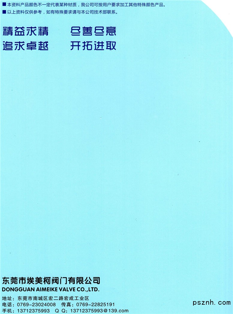 東莞市埃美柯閥門有限公司全體員工本著:管理有心、生產(chǎn)用心、品質(zhì)盡心、交貨放心、服務(wù)貼心、客戶安心”是我們長期奉行的經(jīng)營理念,致力于高品位、高檔次的新品開發(fā)是我們努力的方向。東莞市埃美柯閥門有限公司是您可信賴的朋友,YOMTEY產(chǎn)品是您可信賴的產(chǎn)品,我們竭誠歡迎您的光臨。
