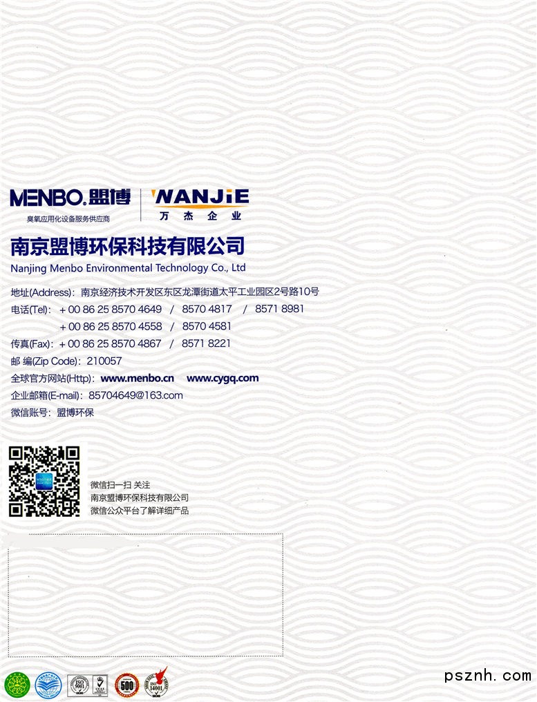 南京盟博作為中國臭氧協(xié)會、環(huán)境保護協(xié)會會員單位擁有多年臭氧應用化設備、環(huán)保設備、電熱設備等的研發(fā)、設計、制造與服務的歷史,“ ”牌環(huán)保成套設備嚴格按照ISO9001-2000質量管理體系標準研發(fā)、設計與制造世界一流的成套環(huán)保設備,擁有多年大型系統(tǒng)的良好運行業(yè)績。