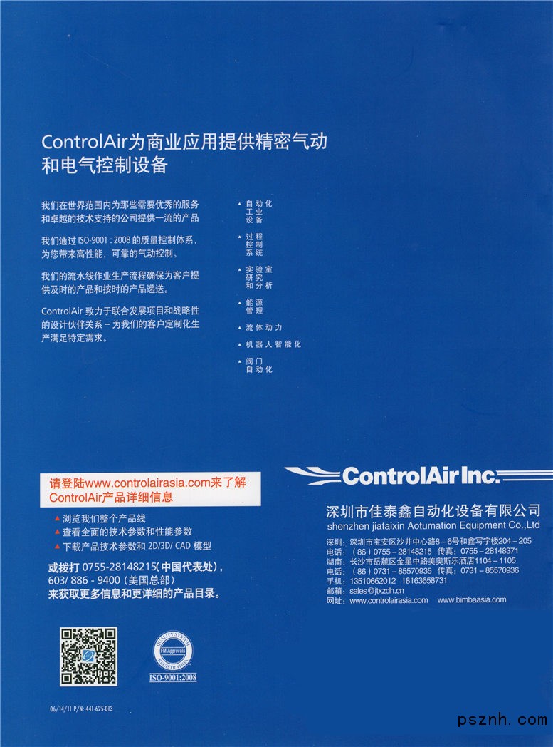 美國Controlair(康氣通)公司是一家世界領(lǐng)先的生產(chǎn)用戶自動(dòng)化工業(yè)設(shè)備,過程控制系統(tǒng)和儀器,實(shí)驗(yàn)室研究和分析,能源管理,流體動(dòng)力,機(jī)器人和閥門自動(dòng)化應(yīng)用相關(guān)精密氣動(dòng)和電氣控制產(chǎn)品的世界級(jí)制造商。公司通過ISO-9001/2008國際質(zhì)量體系認(rèn)證,確保嚴(yán)格控制產(chǎn)品規(guī)范和生產(chǎn)流程,以生產(chǎn)高性能,高可靠性的氣動(dòng)控制產(chǎn)品。