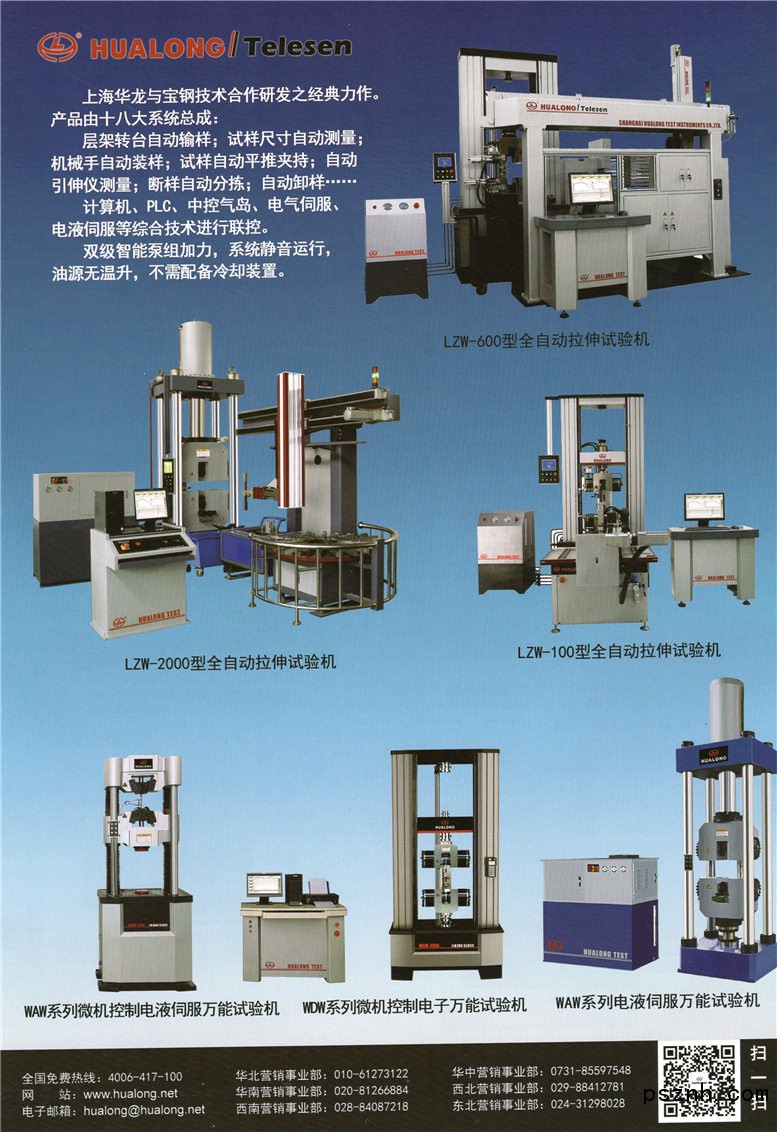 2010年被浦東新區(qū)人民政府命名為“浦東新區(qū)小巨人企業(yè)”。 上海華龍測試儀器股份有限公司組建于1993年5月8日。集團(tuán)建制為七司五部兩辦三中心,即液壓試驗(yàn)機(jī)分公司、電子試驗(yàn)機(jī)分公司、新特試驗(yàn)機(jī)分公司、機(jī)械制造分公司、南方營銷分公司、北方營銷分公司、進(jìn)出口貿(mào)易公司、計(jì)劃部、采購部、物控部、品質(zhì)部、財(cái)務(wù)部;營銷辦公室、綜合辦公室、研發(fā)中心、文控中心、售后服務(wù)中心。在北京、西安、成都、沈陽、長沙、廣州、上海設(shè)置七大區(qū)營銷事業(yè)部。華龍研發(fā)生產(chǎn)的沖擊試驗(yàn)機(jī)、拉伸試驗(yàn)機(jī)、蠕變試驗(yàn)機(jī)、壓剪試驗(yàn)機(jī)等測試產(chǎn)品廣泛應(yīng)用于航空航天、國防軍工、機(jī)械制造、車輛船舶、鋼鐵冶金、電線電纜、塑料橡膠、建筑建材、大專院校、科研院所、商檢質(zhì)檢等國民經(jīng)濟(jì)各領(lǐng)域,對各類金屬、非金屬、構(gòu)件、成品、新材料的各項(xiàng)物理力學(xué)性能測試、分析和研究。