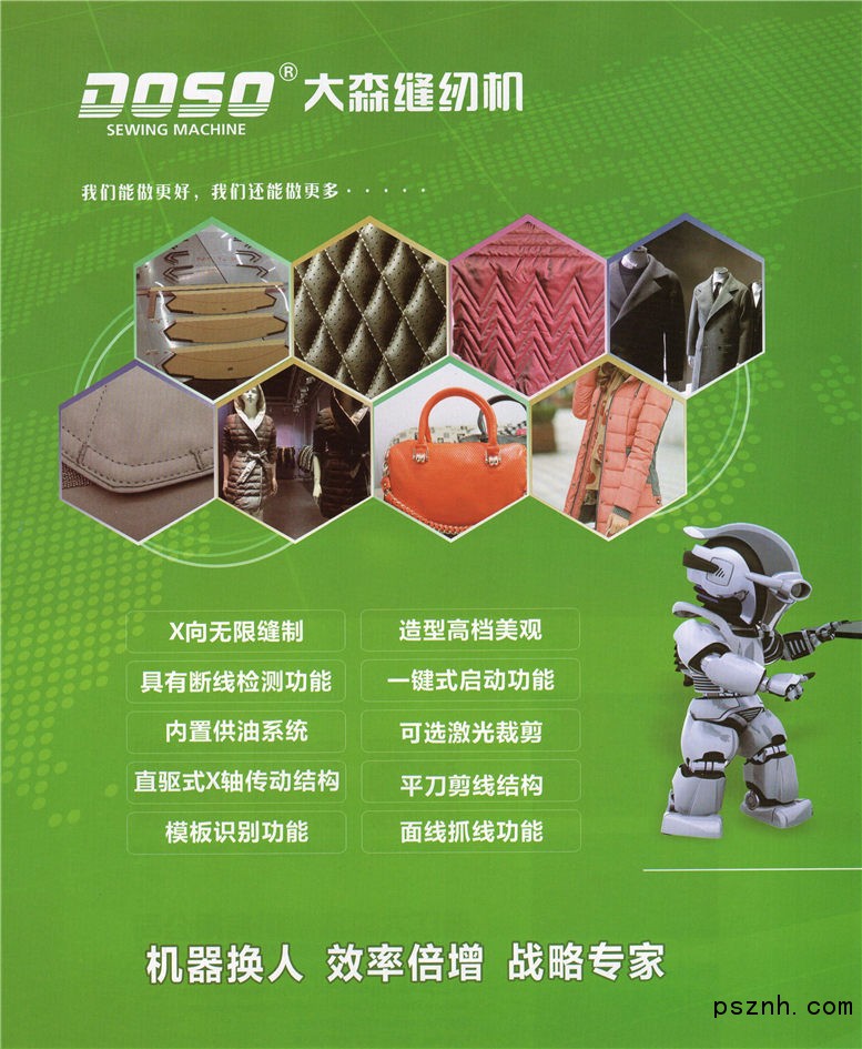 公司秉承"精、誠、穩(wěn)"的經(jīng)營哲學(xué),即----精益求精,誠實(shí)經(jīng)營,穩(wěn)步前進(jìn),在市場(chǎng)經(jīng)濟(jì)大潮中成功站穩(wěn)腳跟,并茁壯成長(zhǎng),多年來在中國服裝機(jī)械行業(yè)積累了豐富經(jīng)驗(yàn)。通過不斷努力與發(fā)展,公司現(xiàn)已發(fā)展成為一個(gè)集科研、開發(fā)、設(shè)計(jì)、生產(chǎn)、貿(mào)易、服務(wù)于一體的專業(yè)服裝機(jī)械制造商。公司已通過ISO9001:2000質(zhì)量管理體系認(rèn)證?,F(xiàn)有產(chǎn)品:特種機(jī)系列,電子花樣機(jī)系列,繃縫機(jī)系列,包縫機(jī)系列,平縫機(jī)系列,厚料機(jī)系列,節(jié)能電機(jī)等七大類90余種產(chǎn)品暢銷世界各地,深受廣大客戶的好評(píng)。
