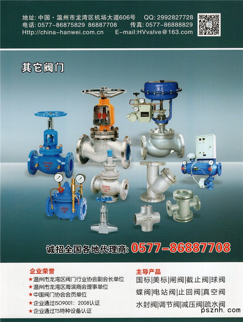 漢威閥門有限公司創(chuàng)建于1995年,集豐富的設(shè)計(jì)、研發(fā)、管理與服務(wù)經(jīng)驗(yàn)的閥門制造企業(yè)、是我國較早生產(chǎn)引進(jìn)設(shè)備配套閥門的廠家之一,系中國質(zhì)量認(rèn)證中心ISO9001:2008質(zhì)量管理體系認(rèn)證、TS特種設(shè)備制造許可證單位。公司技術(shù)力量雄厚,運(yùn)用CAD進(jìn)行產(chǎn)品輔助設(shè)計(jì)及CIMS計(jì)算機(jī)網(wǎng)絡(luò)管理,擁有高精度CNC加工設(shè)備和完善的檢測設(shè)備。按照中國、美國、日本、德國、英國、瑞典、意大利等標(biāo)準(zhǔn)生產(chǎn),還可根據(jù)用用戶特定要求非標(biāo)生產(chǎn)。再上傳實(shí)踐中,積極消化吸收國內(nèi)外先進(jìn)技術(shù),先后開發(fā)了三通球閥、食品機(jī)械等一批代表性產(chǎn)品,由于品質(zhì)可靠,價(jià)格合理,深受國內(nèi)外客戶好評(píng)。