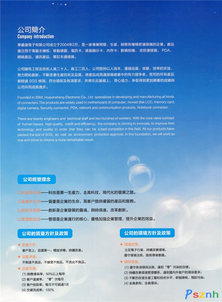 華鑫盛電子有限公司成立于2004年2月,是一家專業(yè)開發(fā)、生產(chǎn)、銷售各種精密連接器的企業(yè)。產(chǎn)品廣泛應(yīng)用于電腦主板、移動硬盤、數(shù)碼相機、PDA、網(wǎng)絡(luò)通信、安防監(jiān)控、計量電表、Netbook、智能設(shè)備等行業(yè)。