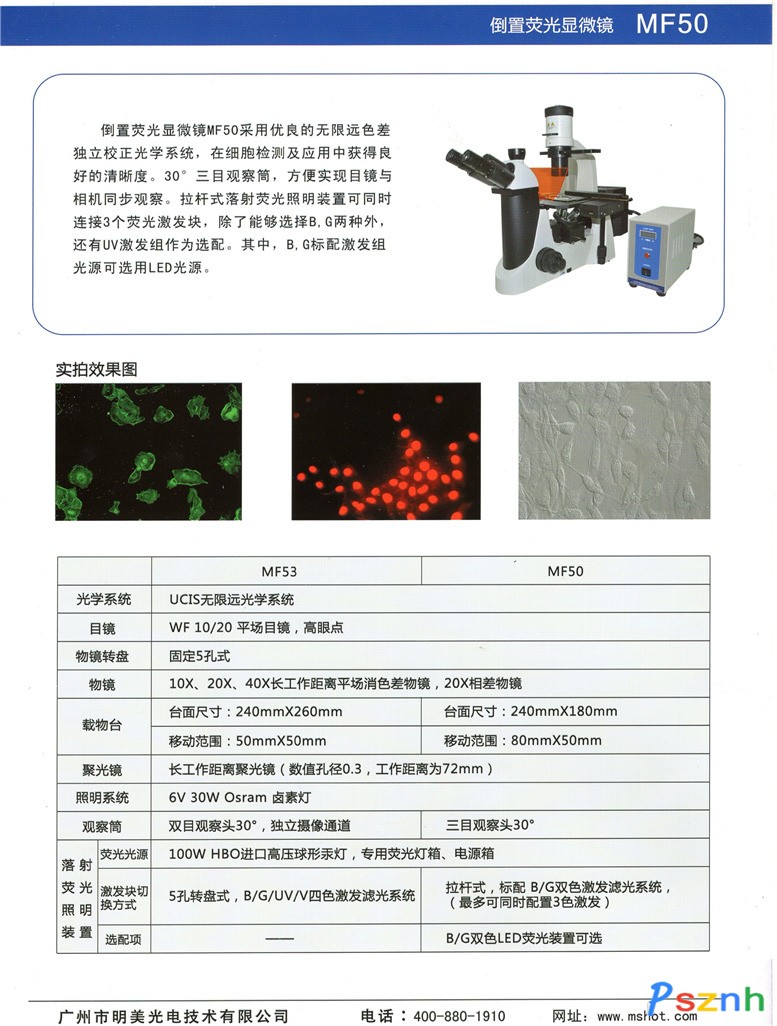 公司主要產(chǎn)品有:專業(yè)級數(shù)碼攝像頭MC55、MC50、MC20、MD55、MD90、MD50;MSHOT數(shù)碼顯微鏡系列;大體標本成像儀;體視熒光顯微鏡;顯微鏡相機接口及配件等。產(chǎn)品廣泛應(yīng)用于高校、研究所、企事業(yè)單位實驗室。目前廣州市明美光電技術(shù)有限公司能為國內(nèi)外客戶提供詳細的顯微鏡成像售前咨詢,樣品實測,以及全面的顯微觀測解決方案,同時公司具有完善的售后服務(wù)體系,可以提供及時快捷的顯微數(shù)碼成像產(chǎn)品技術(shù)支持,維修服務(wù)。