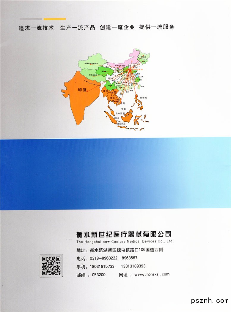 衡水新世紀醫(yī)療器械有限公司是生產(chǎn)醫(yī)療用品的專業(yè)企業(yè),自成立以來,先后研制了九種新產(chǎn)品,磁療頸部牽引器,按摩健身球等獲得國家專利產(chǎn)品,經(jīng)過十多年的發(fā)展,公司不斷提高科研隊伍,以開發(fā)新產(chǎn)品為發(fā)展目標(biāo),逐步提高公司產(chǎn)品的科技含量和聲譽。