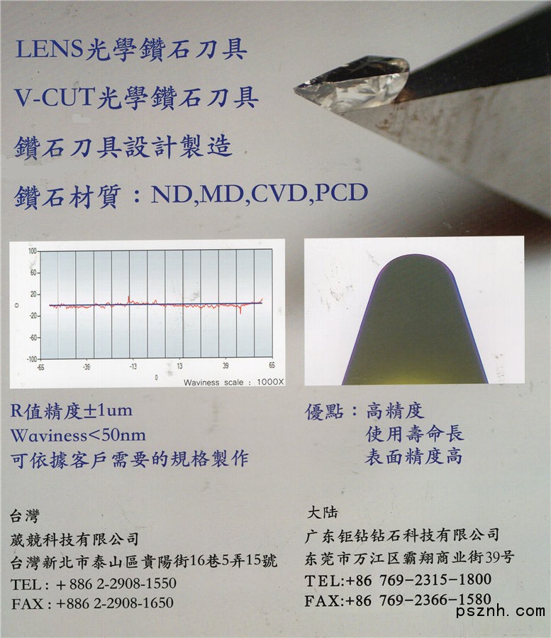 廣東鉅鉆鉆石科技有限公司.主要生產(chǎn):LENS光學(xué)鉆石刀具、V-CUT光學(xué)鉆石刀具、及維修各種單晶刀具。