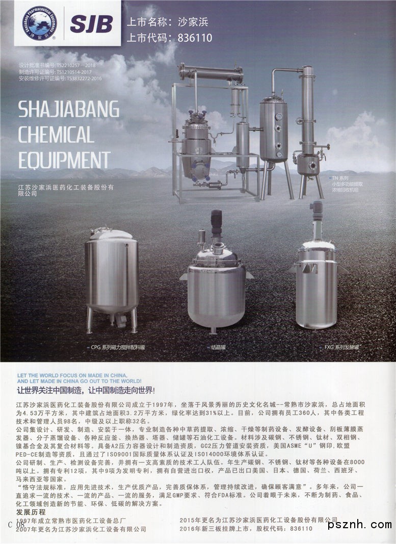 江蘇沙家浜醫(yī)藥化工設備有限公司(常熟醫(yī)藥化工設備總廠,沙家浜藥機)成立于1978,位于沙家浜常熟市,這是一個美麗的歷史文化名城。是一家從事石油化工、生物工程、真空制鹽、化纖、制藥、食品等行業(yè)的設計、開發(fā)、制造、安裝的民營科技企業(yè)。產品已出口到美國、日本、德國、荷蘭和西班牙。,馬來西亞和其他國家。