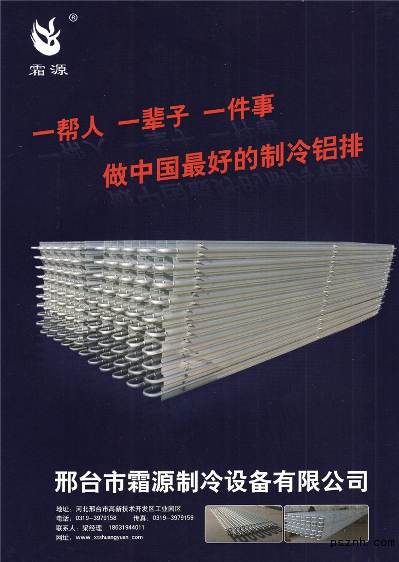 河北邢臺霜源制冷設(shè)備有限公司是生產(chǎn)(霜源牌)系列鋁合金蒸發(fā)器(鋁排)的專業(yè)廠家 。公司主要業(yè)務(wù)為:制冷工程的設(shè)計與安裝,非標(biāo)制冷設(shè)備的設(shè)計,以及冷庫鋁合金蒸發(fā)器的研發(fā)與生產(chǎn),產(chǎn)品主要適用于各種裝配式冷庫(速凍庫,冷凍庫,保鮮冷藏庫),產(chǎn)品高效,省電,不占空間,系統(tǒng)干凈,延長壓縮機使用壽命節(jié)省冷媒,安裝方便,省時,省力,省空間的特點深受制冷公司和廣大客戶的青睞。其生產(chǎn)的“霜源”牌鋁合金蒸發(fā)器為全國知名品牌,在國內(nèi)制冷行業(yè)中深受同仁的厚愛,其銷售范圍與銷量每年都大幅度的提升。