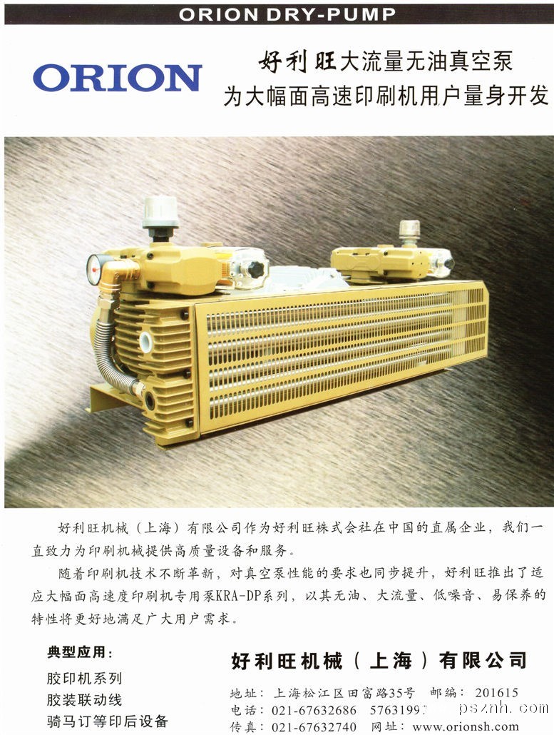 2009年10月好利旺大流量真空泵KRA9本土化,開始配套進口大幅面膠印機