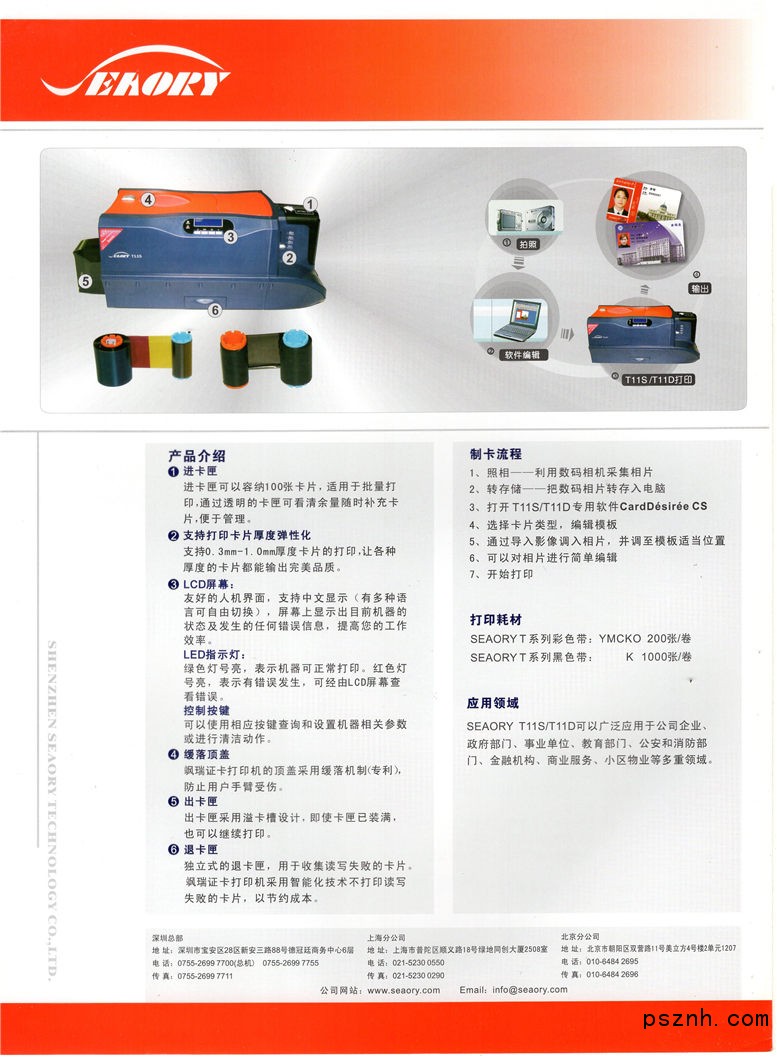 個性化發(fā)卡設(shè)備方面,我們是中國HiTi公司的證卡產(chǎn)品中國總代理,并同時代理DataCard、DIS、Zebra、Evolis等公司的證卡打印機產(chǎn)品。 2012年,我公司自有品牌產(chǎn)品“SEAORY(颯瑞)”證卡打印機已經(jīng)正式面市。