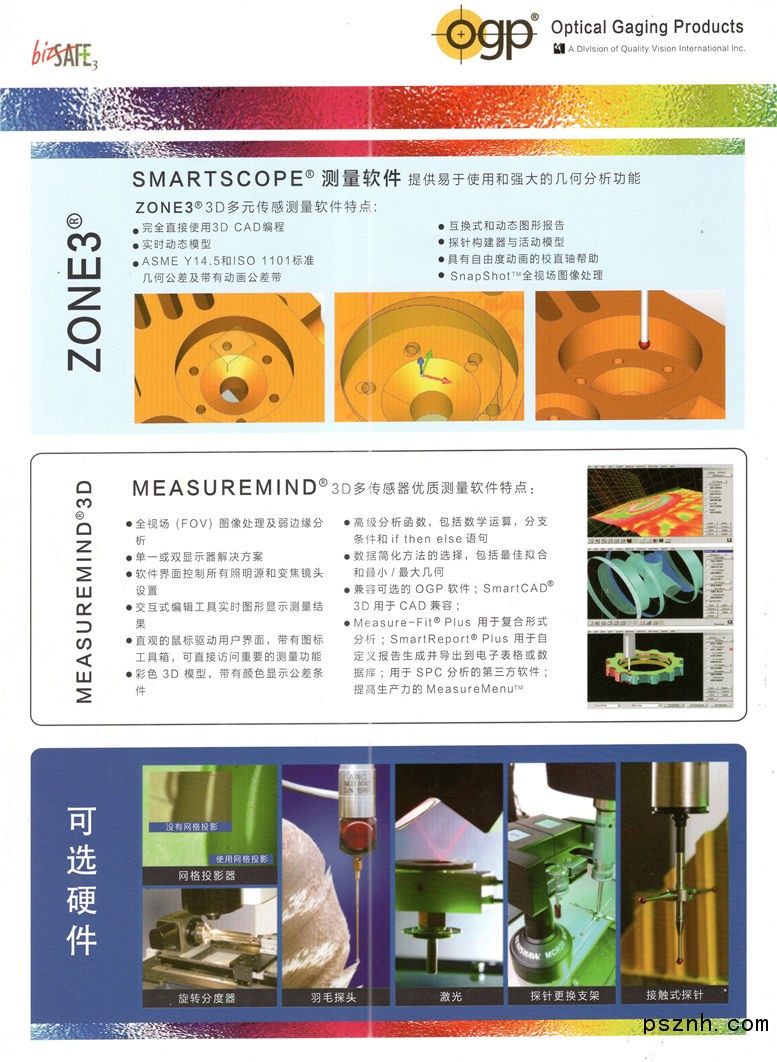 在1945年有一家新公司在紐約水牛城成立以支援剛具雛形的光學(xué)對(duì)比儀產(chǎn)業(yè)。Universal Engraving和Colorplate公司的工程師專業(yè)分部(ESD) 開始制造工作臺(tái)夾具裝置和測(cè)量對(duì)比圖。之后搬到紐約羅切斯特,ESD被一群雇員收購了,并且改組成為OGP公司(Optical Gaging Products, Inc.)和PGI公司(Projection Gages, Inc)。OGP因成為伊斯曼柯達(dá)公司的輪廓投影儀的獨(dú)家分銷商而開始了工作的關(guān)系。OGP迅速地?cái)U(kuò)展并且成為美國本土光學(xué)檢查的領(lǐng)導(dǎo)者。在1955年,其中一名OGP的創(chuàng)建者,愛德華包立德(Edward C. Polidor),成立了自動(dòng)化測(cè)量公司(Automation Gages, Inc.),一家專門從事定制檢查設(shè)備的公司。沒多久自動(dòng)化測(cè)量公司成為了博士倫公司包括光學(xué)對(duì)比儀和分析顯微鏡的全國(美國)總代理。1959年當(dāng)伊斯曼柯達(dá)公司出售輪廓投影儀產(chǎn)品線時(shí),OGP找到去底特律的方法并成為Ex-Cell-O公司的一部分。為了迎接未來的挑戰(zhàn),自動(dòng)化測(cè)量公司展開了一項(xiàng)計(jì)劃,建立市場(chǎng)需要的核心技術(shù)的領(lǐng)導(dǎo)地位。在1969至1973期間,他們獲得常規(guī)測(cè)量研究公司(General Measurement Research, Inc.),一家數(shù)字遞增光柵系統(tǒng)生產(chǎn)商,視像檢查產(chǎn)品(Vision Inspection Products),制圖機(jī)和1:1縮放儀的設(shè)計(jì)和制造者,Ex-Cell-O公司和Bendix Measurement Division的光學(xué)投影對(duì)比儀產(chǎn)品,到最后,OGP于1973在紐約羅切斯特把所有運(yùn)作結(jié)成一體。從那時(shí)開始,OGP就成為環(huán)球非接觸式測(cè)量技術(shù)的領(lǐng)導(dǎo)者。OGP和AG公司對(duì)重要和先進(jìn)技術(shù)有著重大的貢獻(xiàn)。