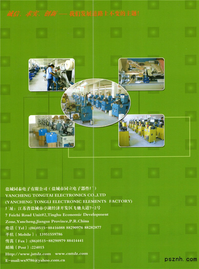 公司占地32畝,擁有固定資產(chǎn)3000萬元,廠房12000平方米,職工168人,公司擁有最先進的膜層電阻流水線七條,可向國內(nèi)外客戶提供各種型號,規(guī)格的水泥電阻,碳膜電阻,金屬膜電阻;金屬氧化膜電阻;玻璃釉電阻;熔斷電阻電阻;線繞電阻器和瓷片電容器。年產(chǎn)量20億只。位居國內(nèi)行業(yè)前列。公司先后從德國。臺灣等地引進先進設(shè)備和技術(shù),不斷創(chuàng)新。開發(fā)市場所需要的產(chǎn)品,積極開拓國內(nèi)外市場。