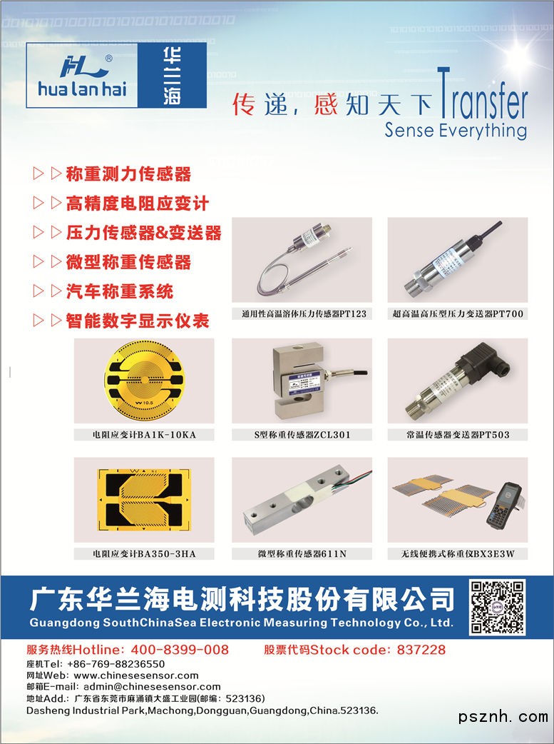 廣東華蘭海電測科技股份有限公司(原東莞市華蘭海電子有限公司)成立于2003年,是一家自主研發(fā)和生產(chǎn)高精度電阻應(yīng)變計(jì)、應(yīng)變式測力稱重傳感器、彎板式稱重傳感器、公路計(jì)重收費(fèi)系統(tǒng)、便攜式汽車軸重儀、壓力傳感器/變送器等電測類產(chǎn)品以及智能健康軟硬件產(chǎn)品的多元化高新技術(shù)企業(yè)。