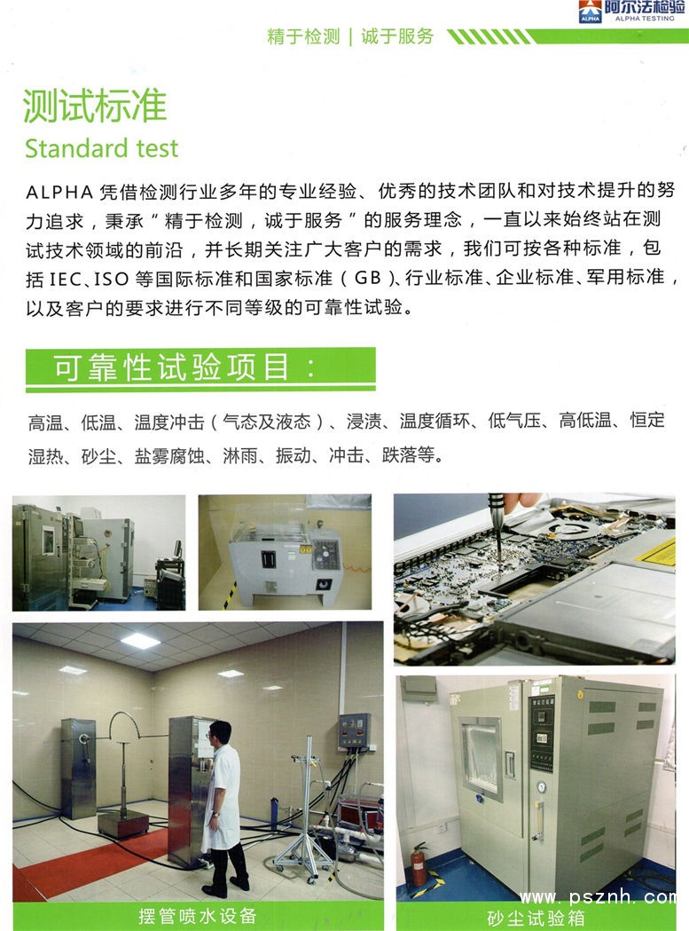 于ALPHA的服務(wù)網(wǎng)絡(luò)和深厚的服務(wù)能力,每年可提供超1萬件樣品檢測服務(wù)。公司自成立以來,本著“公正、科學(xué)、準(zhǔn)確、高效、滿意”的質(zhì)量方針和“品牌第一、質(zhì)量第一、效率第一”的服務(wù)理念,服務(wù)的客戶包括世界500強(qiáng)在內(nèi)的企業(yè)過萬家。作為國際化、多元化的專業(yè)檢測認(rèn)證機(jī)構(gòu),ALPHA有自我超越的勇氣,立志成為具有社會(huì)使命感的行業(yè)領(lǐng)跑者。