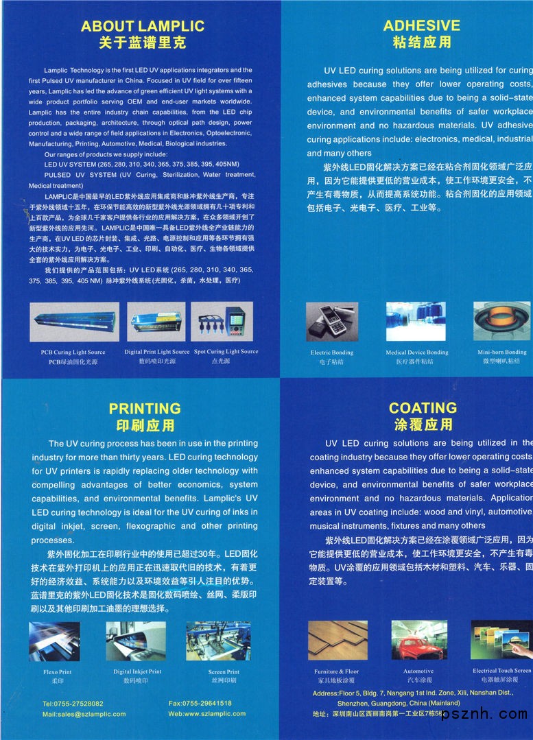 深圳市藍(lán)譜里克科技有限公司是一家集研發(fā)、生產(chǎn)、銷售、服務(wù)為一體的光電科技企業(yè)。自一九九八年成立以來(lái),秉持“誠(chéng)信、專注、創(chuàng)新”的經(jīng)營(yíng)理念,專業(yè)從事于新型環(huán)保節(jié)能特種光源的研發(fā)和應(yīng)用。經(jīng)過(guò)十余年不懈的努力,現(xiàn)以LED紫外線光固化,脈沖紫外線光固化,LED-UV噴墨打印,太陽(yáng)光模擬器,生物、醫(yī)學(xué)、警用檢測(cè)分析光源,植物生長(zhǎng)燈,科研多波段光源,紫外殺菌,LED光子醫(yī)療,脈沖紫外線水處理、蔬菜處理、空氣處理等為主要產(chǎn)品線。在軍事、科研、生物、刑偵、光電、美容、醫(yī)療、水處理、蔬菜處理等眾多領(lǐng)域已取得了廣泛的應(yīng)用。公司產(chǎn)品和解決方案擁有多項(xiàng)自主知識(shí)產(chǎn)權(quán),不僅滿足于國(guó)內(nèi)市場(chǎng),而且業(yè)務(wù)拓展到全球領(lǐng)域,目前產(chǎn)品與服務(wù)已出口到日本、韓國(guó)、美國(guó)、新加坡、歐洲等國(guó)家和地區(qū),并得到眾多國(guó)際知名公司的一致認(rèn)可。