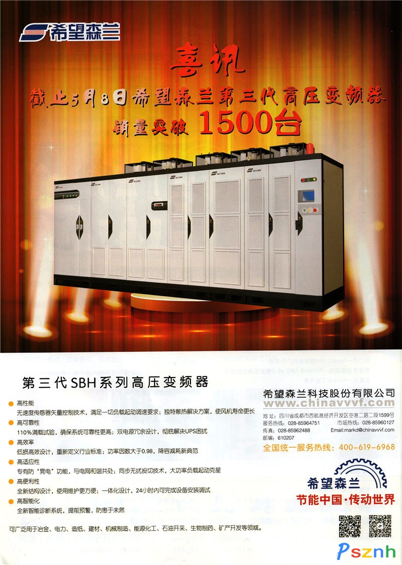 希望森蘭科技股份有限公司是一家致力于高中低壓變頻技術(shù)的研發(fā)及相關(guān)產(chǎn)品的設(shè)計、開發(fā)、生產(chǎn)、銷售和服務(wù)的國家重點(diǎn)高新技術(shù)企業(yè),是國內(nèi)最早從事變頻技術(shù)研發(fā)和應(yīng)用的企業(yè)之一,是中國最大的變頻器研發(fā)制造基地之一,也是變頻器行業(yè)首批獲得“中國名牌”產(chǎn)品稱號和“中國馳名商標(biāo)”認(rèn)定的企業(yè)。