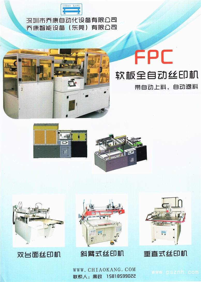 公司產品:CCD全自動印刷機、玻璃高精印刷機、PCB印刷機、薄膜印刷機、軟板印刷機及各種專業(yè)平面絲印機;涂布機、刮膠研磨機、網版上膠機等相關自動化設備。