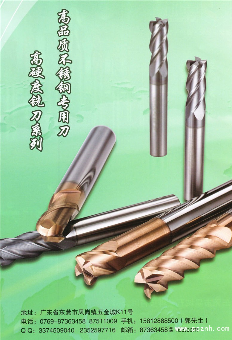 東莞市名銳切削工具有限公司是一家專業(yè)生產(chǎn)鎢鋼(硬質(zhì)合金)刀具的廠家,擁有德國五軸精密CNC工具磨床及臺灣工具生產(chǎn)設(shè)備10余臺,光學(xué)檢驗設(shè)備數(shù)臺,并選用國內(nèi)外優(yōu)質(zhì)鎢鋼素材,品質(zhì)穩(wěn)定,經(jīng)驗豐富,秉持著[不斷進取,精益求精]的理念經(jīng)營,專業(yè)的為您解決各種刀具問題。主要產(chǎn)品有:微晶粒鎢鋼涂層銑刀、高速鋁專用銑刀、超微粒鎢鋼鉆頭、鎢鋼圓棒、鉸刀、鋸片銑刀、焊刃式鋸片銑刀、燕尾刀、槽銑刀、螺旋銑刀、T型銑刀、燕尾槽銑刀、面銑刀盤。同時根據(jù)客戶不同加工要求訂做各類非標刀具,如臺階鉆、臺階銑刀、復(fù)合鉸刀、鉆鉸刀、鉆銑刀、扁鉆、半月鉆、雕刻刀、錐度鉆頭、高爾夫球刀鉸刀、粗皮銑刀、焊接T型刀、焊接臺階銑刀、焊接螺旋銑刀;交貨期快,質(zhì)量保證。歡迎廣大朋友提供圖紙或樣品前來訂做; 同時代理多種進口品牌刀具,刀片,如:三菱、日立、瓦爾特、京瓷、KORLOY等。