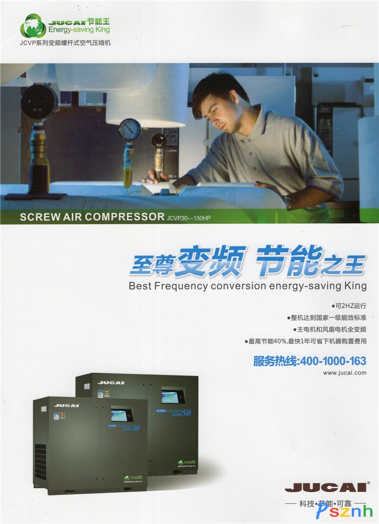 為響應(yīng)國家“十二五”規(guī)劃和節(jié)能減排的號召,JUCAI研發(fā)中心聯(lián)合施耐德公司,選用歐美高效主機(jī)、日本變頻電機(jī)技術(shù),成功研發(fā)出JCVP系列變頻節(jié)能螺桿式空壓機(jī),該系列產(chǎn)品均達(dá)到國家一級(最高)能效標(biāo)準(zhǔn)和國際先進(jìn)水平。