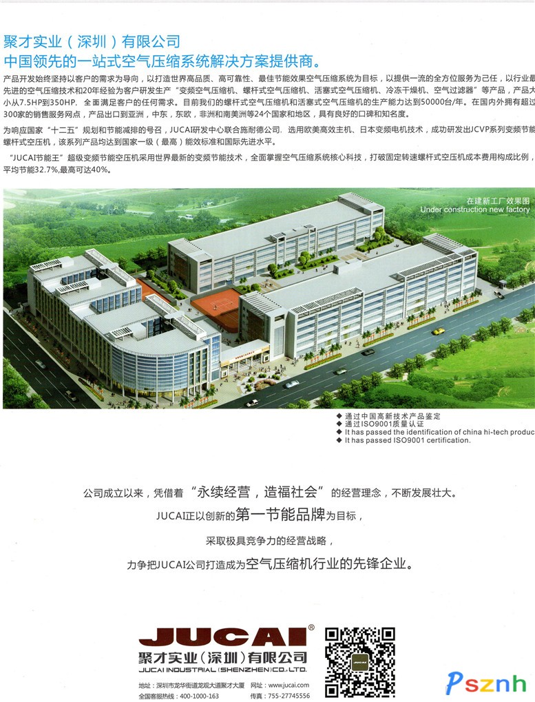聚才實(shí)業(yè)(深圳)有限公司是香港聚才國際集團(tuán)全資企業(yè),中國領(lǐng)先的空氣壓縮機(jī)解決方案提供商。成立于1996年,是一家集設(shè)計、生產(chǎn)、營銷于一體的空氣壓縮機(jī)制造企業(yè)。