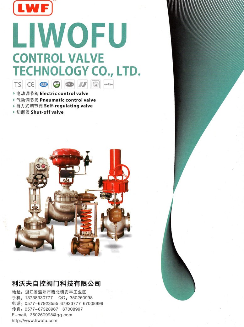 浙江利沃夫自控閥門科技有限公司是一家在自控閥門等領(lǐng)域有著多年生產(chǎn)和服務(wù)經(jīng)驗(yàn)的專業(yè)廠家。產(chǎn)品范圍覆蓋:電子式調(diào)節(jié)閥、自力式調(diào)節(jié)閥、高壓調(diào)節(jié)閥、疏水調(diào)節(jié)閥、特種調(diào)節(jié)閥、套筒調(diào)節(jié)閥、鍋爐給水調(diào)節(jié)閥、氣動薄膜調(diào)節(jié)閥、電動三通調(diào)節(jié)閥、氣動單座調(diào)節(jié)閥、灰水黑水調(diào)節(jié)閥、電動高壓調(diào)節(jié)閥、手動調(diào)節(jié)閥、籠式角閥、單座調(diào)節(jié)閥、自力式微壓調(diào)節(jié)閥、電動單座調(diào)節(jié)閥、電動套筒調(diào)節(jié)閥、減壓閥、氣動隔膜泵,波紋管截止閥,德標(biāo)截止閥,qby氣動隔膜泵,止回閥、柱塞閥、各種襯氟閥門、襯氟調(diào)節(jié)閥等產(chǎn)品,公司總部設(shè)在浙江省永嘉縣甌北安豐工業(yè)區(qū),公司的誠信、實(shí)力和產(chǎn)品質(zhì)量獲得業(yè)界的認(rèn)可。