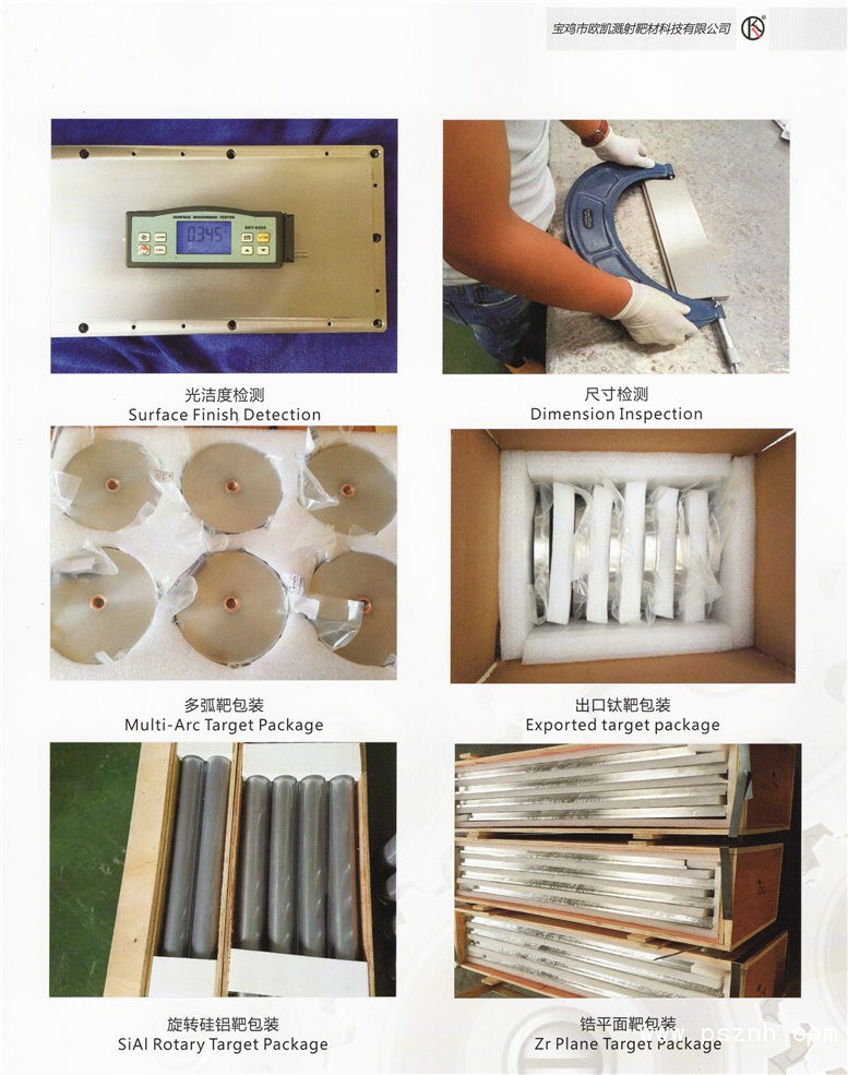 寶雞市歐凱濺射靶材科技有限公司是金屬材料、鈦、鋯、鎳、鉻、鈦合金、鎳合金、鉬、鈮等產(chǎn)品專業(yè)生產(chǎn)加工的有限責(zé)任公司,公司總部設(shè)在陜西寶雞,寶雞歐凱濺射靶材科技有限公司擁有完整、科學(xué)的質(zhì)量管理體系。