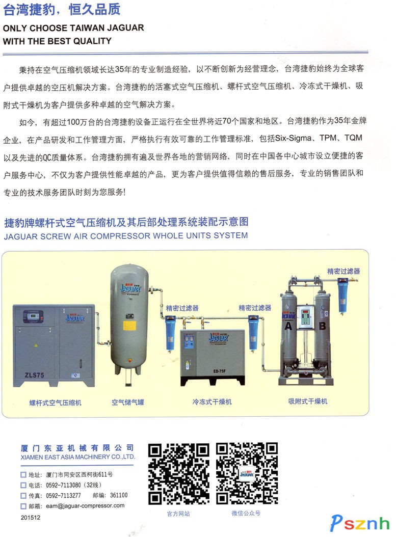 2015年臺(tái)灣捷豹榮獲中國(guó)空壓機(jī)行業(yè)十大品牌第一名,公司年銷售額超過(guò)6億人民幣。
