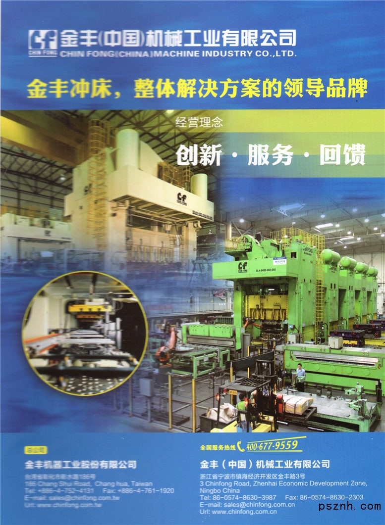 金豐企業(yè)集團1948年由紀(jì)金標(biāo)先生創(chuàng)立于臺灣彰化,經(jīng)歷半個世紀(jì)的努力經(jīng)營,已成為臺灣最大的鍛壓機械制造廠,在世界鍛壓機械行業(yè)中排行第四,產(chǎn)品行銷世界各國,如英、美、日、澳、南美、東南亞等,且是臺灣機械產(chǎn)品銷往日本的少數(shù)廠家之一,主要客戶涵蓋日本各大汽車廠,如豐田(TOYOTA)