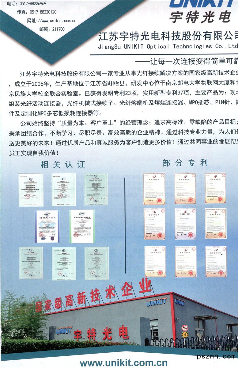 江蘇宇特光電科技股份有限公司是一家專業(yè)從事光纖機械冷接續(xù)技術(shù)產(chǎn)品的研發(fā)、制造和銷售的高新技術(shù)企業(yè),成立于2006年5月24日,公司技術(shù)實力雄厚、產(chǎn)品研發(fā)定位高,致力于研發(fā)和生產(chǎn)具有國際先進(jìn)、國內(nèi)領(lǐng)先水平的光纖冷接子、光纖快速接續(xù)連接器、復(fù)合套管、各類特種塑料適配器等。產(chǎn)品廣泛應(yīng)用于高溫、低溫、潮濕、污染,氣候多變等各種惡劣環(huán)境,后期故障發(fā)生率極低。產(chǎn)品種類及配套之全,性能之強居全國同行業(yè)之首。aboutus factory