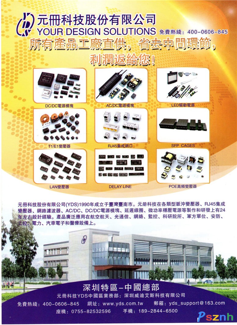 深圳元冊(cè)YDS(深圳威迪艾斯科技有限公司)是臺(tái)灣元冊(cè)在中國(guó)大陸設(shè)立的NEW業(yè)務(wù)總部,New Team負(fù)責(zé)臺(tái)灣元冊(cè)YDS全系列產(chǎn)品在中國(guó)大陸地區(qū)的營(yíng)銷服務(wù)、技術(shù)支持、渠道建設(shè)、信息反饋。我們將以新標(biāo)準(zhǔn)、新理念、新模式來打造"NEW元冊(cè)中國(guó)YDS"。深圳YDS將繼續(xù)秉承立足長(zhǎng)遠(yuǎn)、市場(chǎng)為先、客戶至上、合作共贏的經(jīng)營(yíng)發(fā)展理念,特面向中國(guó)大陸地區(qū)誠(chéng)邀立志于電子元器件行業(yè)發(fā)展的合作伙伴共謀發(fā)展,共襄盛舉。