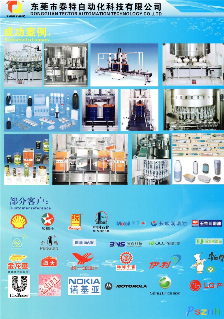 東莞市泰特自動化科技有限公司以雄厚的設計力量為支持,以先進的制造工藝為保證,根據客戶要求,專業(yè)設計制造測漏機、包裝機以及各類非標專用機、生產線運輸帶、各類自動化生產設備。經過多年不懈的努力,公司已經發(fā)展成為專業(yè)的測漏設備生產企業(yè),我們的設備制造工藝更加精致,技術設計水平更加先進,不斷向市場推出新的高品質、高檔次、高技術的產品,羸得了國內外客戶的信賴。我們涉及的行業(yè)包括:金屬、塑料包裝行業(yè)、化工行業(yè)、食品飲料行業(yè)、汽車配件行業(yè)、塑膠電子行業(yè)等等,我們的產品包括:容器測漏機、真空測漏機、 墊片壓入機,包裝流水線輸送機,推碼機,電池測漏機,水壓式測漏機,自動流水處理線。以及各類非標設備。