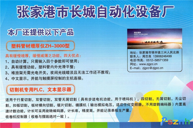 塑料機(jī)械_噴碼機(jī)_塑料管材增厚儀_紅外線糾偏儀_單相、三相可控硅直流調(diào)速裝置_飲料機(jī)械類_鋼筋調(diào)直器控制器_彎箍機(jī)控制器-張家港市長城自動化設(shè)備廠點(diǎn)擊:3279 評論:1 查看原圖 |