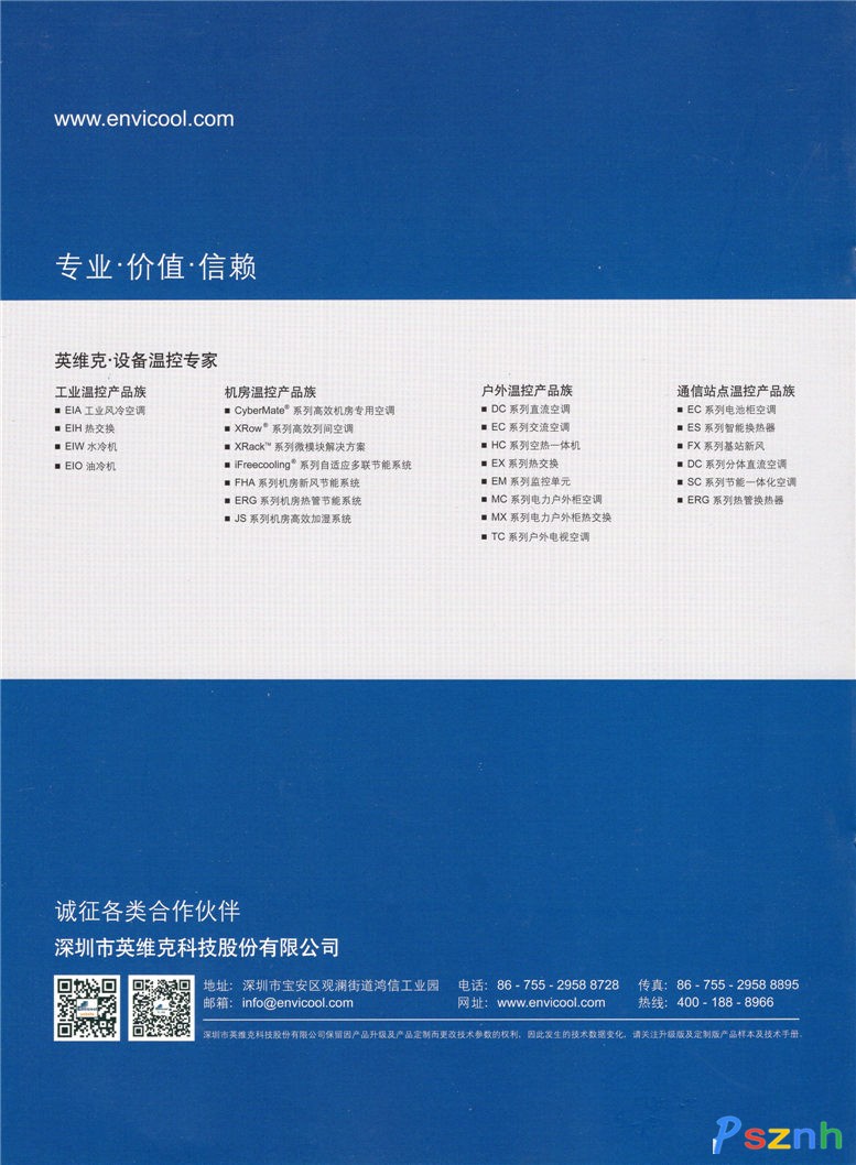 深圳市英維克科技股份有限公司是專注于機(jī)房與設(shè)備環(huán)境控制技術(shù)的國家級高新技術(shù)企業(yè)。掌握著世界領(lǐng)先的制冷系統(tǒng)核心技術(shù)、控制技術(shù)、結(jié)構(gòu)設(shè)計(jì)技術(shù),擁有多項(xiàng)專利。經(jīng)過多年積累,形成了數(shù)據(jù)中心和數(shù)據(jù)接入站點(diǎn)溫控及節(jié)能體系,方案及產(chǎn)品已廣泛應(yīng)用于中國及海外市場。    解決方案包括:數(shù)據(jù)中心機(jī)房溫控及節(jié)能解決方案、中小型機(jī)房溫控方案、微模塊機(jī)柜解決方案、集裝箱及模塊化數(shù)據(jù)中心解決方案、基站與接入站點(diǎn)溫控及節(jié)能解決方案、通信戶外機(jī)柜溫控及節(jié)能方案、特殊應(yīng)用環(huán)境定制類溫控及節(jié)能方案。        英維克公司通過了ISO9001質(zhì)量管理體系、ISO14001環(huán)境管理體系和OHSAS18001職業(yè)健康管理體系認(rèn)證,產(chǎn)品通過了CCC、CE、UL、TUV、中國節(jié)能認(rèn)證等檢測認(rèn)證。采用IPD集成產(chǎn)品開發(fā)流程組織技術(shù)研發(fā)與生產(chǎn),運(yùn)用JIT與TQC的供應(yīng)鏈管理模式,高質(zhì)高效地響應(yīng)客戶需求。        作為中國通信行業(yè)標(biāo)準(zhǔn)化協(xié)會全權(quán)會員單位,英維克積極參與相關(guān)行業(yè)標(biāo)準(zhǔn)的修訂。