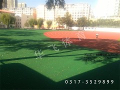 華飛體育透氣型塑膠跑道、混合型塑膠跑道平整美觀、顏色柔和、壓制水分上升,防止起泡、剝離;使用上持久耐磨,可滿足學(xué)校田徑運(yùn)動(dòng)員高頻率的使用。
