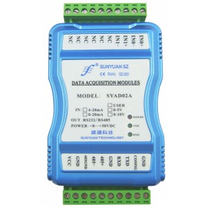 SYAD08T系列模塊,通訊方式采用ASCII字符通訊 協(xié)議或MODBUS RTU通訊協(xié)議,其指令集兼容于ADAM模塊,波特率可由用戶設(shè)置,能與其他廠家的控制模塊掛在同一RS-485總線上,便于計(jì)算機(jī)編程。產(chǎn)品包括電源隔離,輸入輸出信號(hào)隔離、線性化,A/D轉(zhuǎn)換和RS-485串行通信。每個(gè)串口最多可接256只。