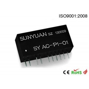 SunYuan  SY系列交流轉(zhuǎn)直流(AC/DC)信號低成本兩隔離變送器,是一種將交流信號采集轉(zhuǎn)換成線性對應(yīng)直流信號的混合集成電路。該電路在同一芯片上集成了一組多路高隔離的DC/DC電源和一組AC/DC信號轉(zhuǎn)換電路??梢詫鞲衅鳎ń涣骰ジ衅鳎┎杉降?-1Vrms(50~60HZ)工頻信號按比例轉(zhuǎn)換成4-20mA/0-10mA /0-20mA直流電流信號或0-1V/0-2.5V/0-5V/0-10V直流電壓信號。IC封裝的產(chǎn)品可通過匹配外接交流互感器組成單相或多相全隔離變送器,實現(xiàn)信號輸入、輸出信號與輔助電源之間的3KV三隔離。