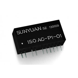 SunYuan ISO系列交流信號(hào)轉(zhuǎn)模擬直流(AC/DC)變送器IC,是一種將電網(wǎng)、電機(jī)檢測(cè)傳感器輸出工頻交流信號(hào)(50~60HZ)轉(zhuǎn)換成線性變化對(duì)應(yīng)模擬直流信號(hào)的混合集成電路。該電路在同一芯片上集成了一組多路高隔離的DC/DC電源和一組AC/DC信號(hào)轉(zhuǎn)換電路??梢詫鞲衅鞑杉降?-1Vrms(50~60HZ)工頻交流信號(hào)按比例轉(zhuǎn)換成4-20mA/0-10mA /0-20mA直流電流信號(hào)或0-1V/0-2.5V/0-5V/0-10V直流電壓信號(hào)。通過(guò)外接交流電壓互感器后就可以組成單相或多相隔離變送器,實(shí)現(xiàn)信號(hào)輸入、輸出信號(hào)與輔助電源之間的三隔離。產(chǎn)品在發(fā)電機(jī)或電動(dòng)機(jī)安全運(yùn)行監(jiān)測(cè)、電力輸配電遠(yuǎn)程監(jiān)控、儀器儀表與傳感器信號(hào)收發(fā)、醫(yī)療設(shè)備安全隔離柵、工業(yè)自動(dòng)化控制等領(lǐng)域廣泛應(yīng)用。