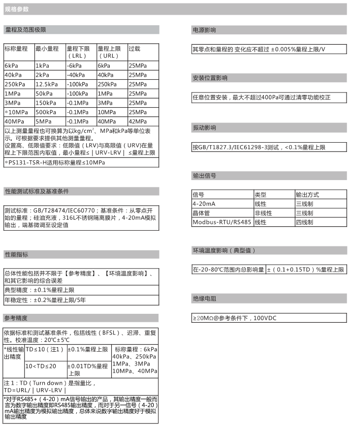 - 4-20mA, Modbus-RT/RS485, 晶體管輸出