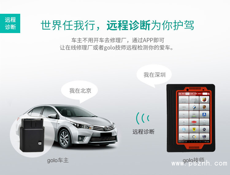 車主不用開車去修理廠,通過APP即可讓在線修理廠或者golo技師遠程檢測車輛。