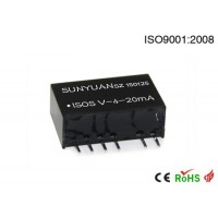 ISOS V-4-20mA是順源新開發(fā)的一款業(yè)界領(lǐng)先技術(shù),小體積(19.5X12.5X9.8mm ;SIP7 Pin單排7腳)低成本無源型兩線制傳感器電壓信號轉(zhuǎn)4-20mA輸出的(V/I轉(zhuǎn)換)隔離變送器IC。該IC能嵌入到普通壓力傳感器的芯體內(nèi)部,同壓力傳感器耦合成壓力變送器,而這種壓力變送器可以把傳感器感應(yīng)到的壓力物理量通過回路饋電方式直接進行隔離放大轉(zhuǎn)換變送成為工業(yè)現(xiàn)場標準采集信號輸出。壓力變送器的輸出信號與壓力物理量之間有對應(yīng)的連續(xù)線性函數(shù)關(guān)系,變送器IC內(nèi)部內(nèi)置專用放大電路、V/I轉(zhuǎn)換電路、傳感器隔離配電電路等,能輸出標準4-20mA電流信號。