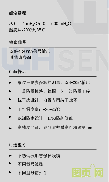 液位溫度一體化變送器WH311-DZ 專為液位溫度要求同時(shí)測(cè)量場(chǎng)合而設(shè)計(jì),其核心部件 采用國(guó)際知名品牌液位溫度傳感器經(jīng)合理精密的結(jié)構(gòu) 設(shè)計(jì)及厚膜技術(shù)溫度補(bǔ)償、信號(hào)放大、V/I轉(zhuǎn)換,對(duì) 不銹鋼外殼進(jìn)行全密封焊接,從而制成工業(yè)標(biāo)準(zhǔn)的雙 路4-20mA信號(hào)輸出且性能穩(wěn)定可靠的全固態(tài)產(chǎn)品 。 WH311溫度液位一體式變送器可同時(shí)測(cè)量介質(zhì) 的液位和溫度,抗干擾雙路4-20mA標(biāo)準(zhǔn)輸出。