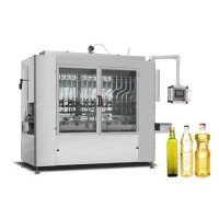 The whole oil line includes a manual operation platform, oil filling machines, cap pressing machines, and sticker labeling machines.