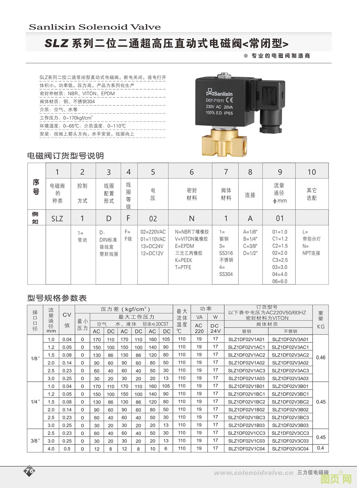 本網(wǎng)頁(yè)所展示的有關(guān)【三力信_(tái)SLZ 系列二位二通高壓直動(dòng)式電磁閥/常閉型_電磁閥】的信息/圖片/參數(shù)等由的會(huì)員【余姚市三力信電磁閥有限公司