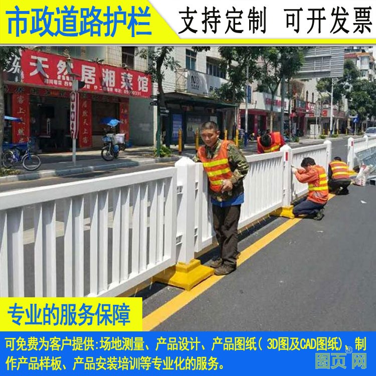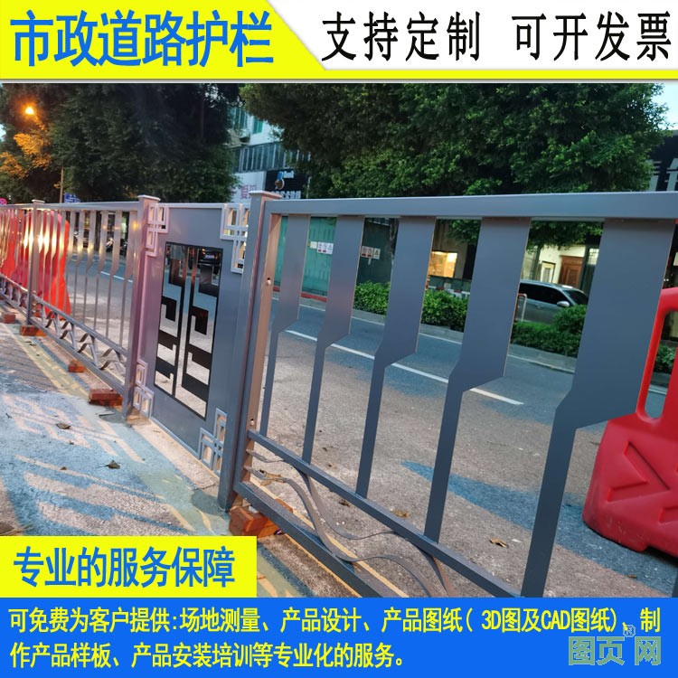城市市政道路護欄,主要指位于城市道路中間或主干道與人行道中間,用于規(guī)范車輛和行人交通安全、維護交通秩序的一種市政道路設(shè)施,通常采用鋅鋼、不銹鋼、鋁合金、PVC塑鋼四種材質(zhì)制造,通常把鋼材焊接成型后,用熱鍍鋅、浸塑、噴氟碳漆等方式進行防銹處理,增強了護欄的抗氧化抗紫外線、耐候耐腐性,安裝時采用無焊穿插組合方式進行拼裝,簡單方便。