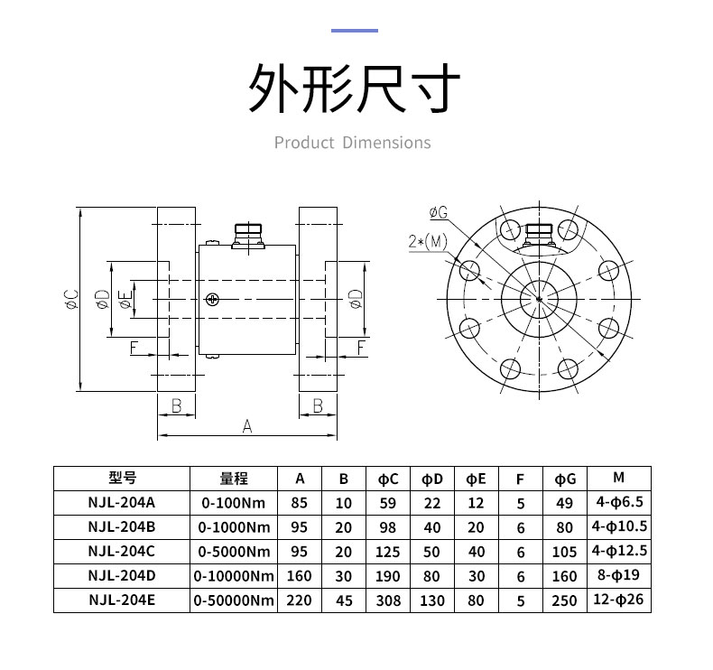| 測(cè)量范圍 | 0~0.2,0.3,0.5,1,2,3,5,10,20,30,50,100Nm (NJL-204A) 0~200/300/500/1000Nm(NJL-204B) 0~2000/3000/5000Nm(NJL-204C) 0~10000Nm(NJL-204D) 0~20000/30000/50000Nm(NJL-204E) |